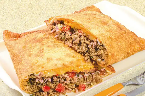 Palmito, frango, carne, milho, ervilha, presunto, queijo e catupiry.